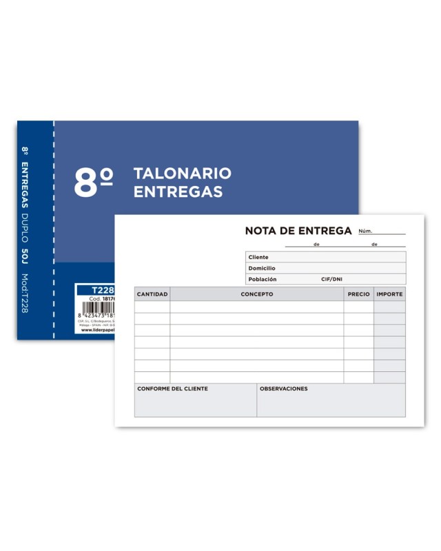 Talonario liderpapel entregas 8º original y copia t228 apaisado