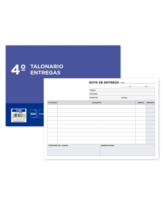 Talonario liderpapel entregas cuarto original t129 apaisado