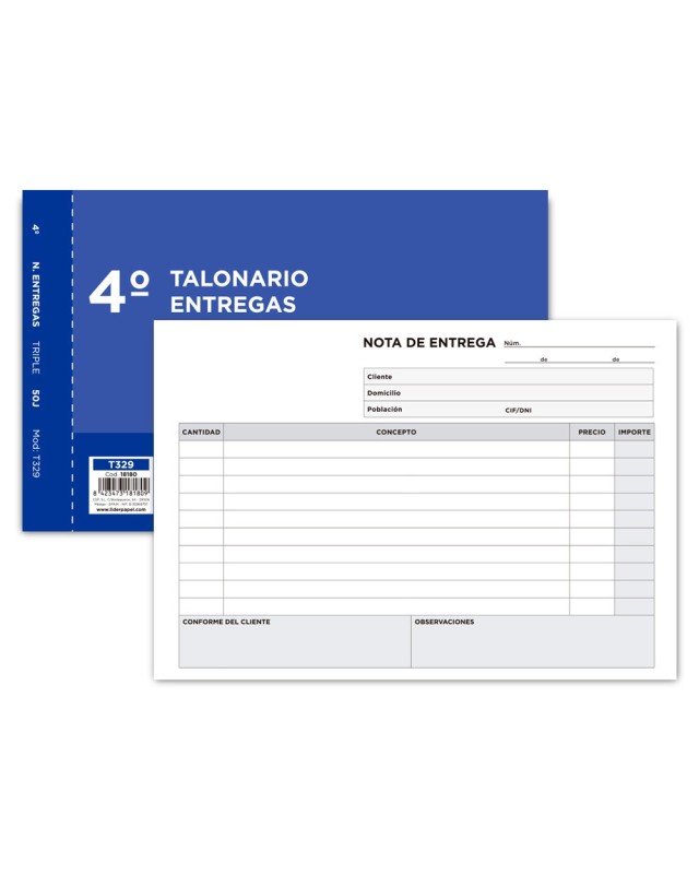 Talonario liderpapel entregas cuarto original y 2 copias t329 apaisado