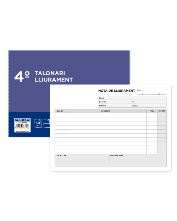 Talonario liderpapel entregas cuarto original y 2 copias t329 apaisado texto en catalan