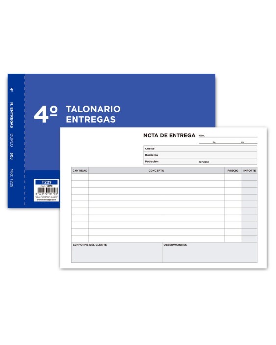 Talonario liderpapel entregas cuarto original y copia t229 apaisado