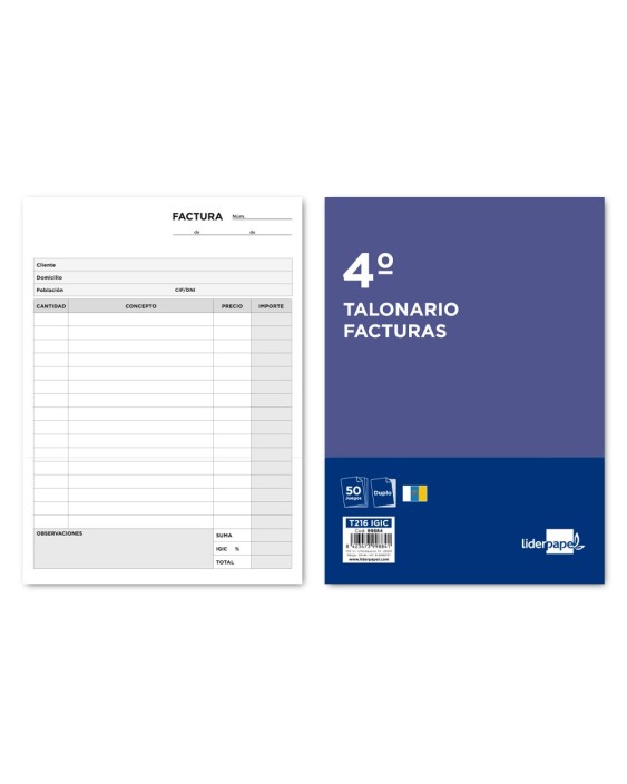 Talonario liderpapel facturas cuarto original y copia t216 con i.g.i.c.