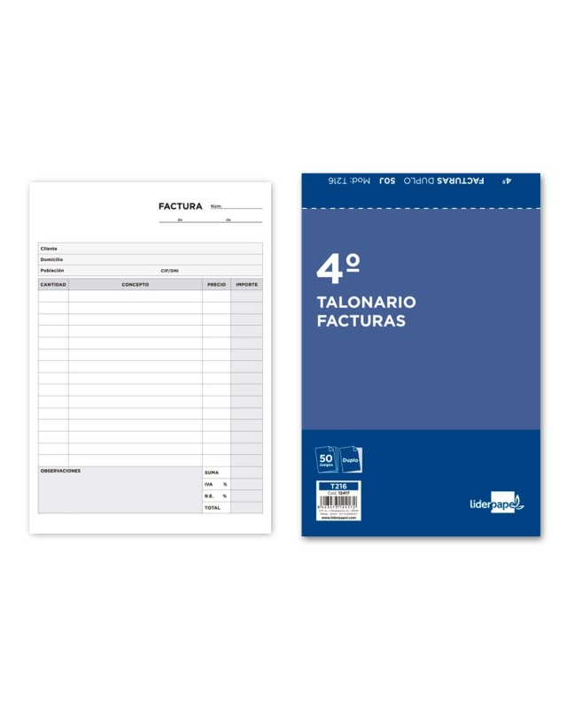 Talonario liderpapel facturas cuarto original y copia t216 con i.v.a.