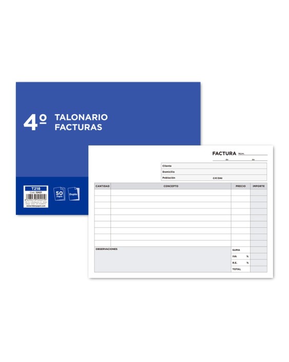 Talonario liderpapel facturas cuarto original y copia t218 apaisado con i.v.a.