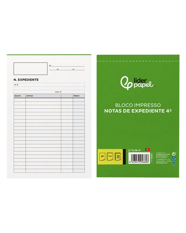 Talonario liderpapel notas de expediente cuarto duplo texto en portugues