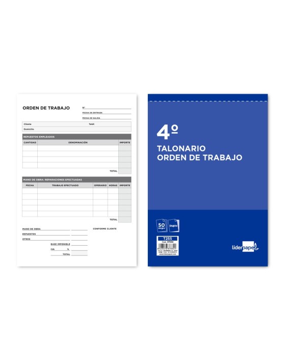 Talonario liderpapel orden de trabajo cuarto original y copia t255