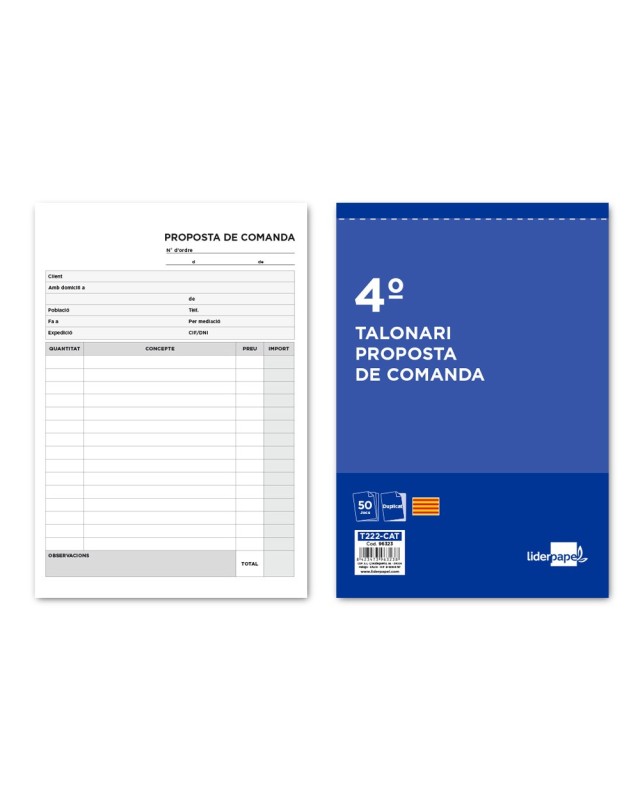 Talonario liderpapel pedidos cuarto original y copia t222 texto en catalan