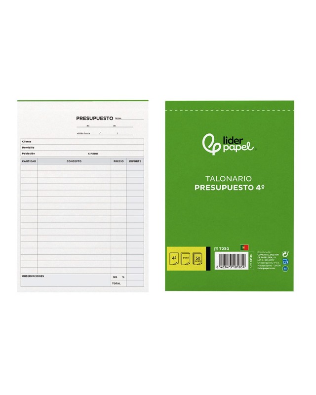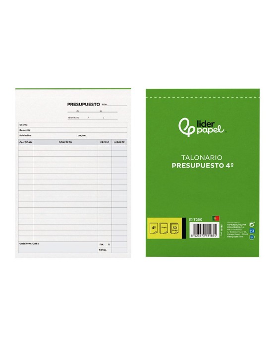 Talonario liderpapel presupuesto cuarto original y copia t230