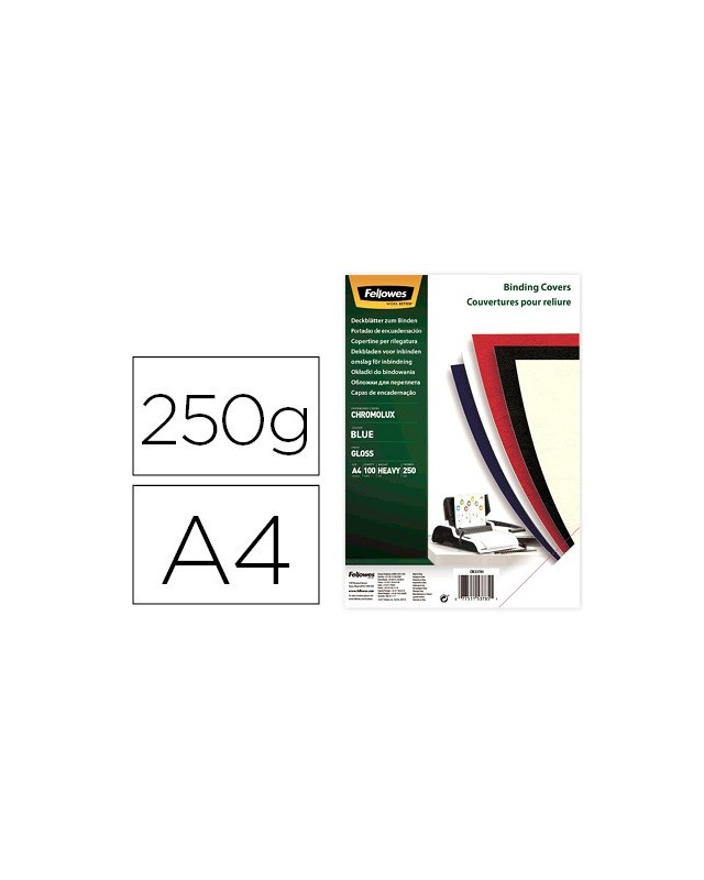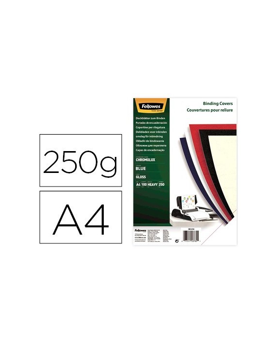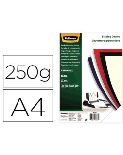 Tapa de encuadernacion fellowes din a4 carton brillo azul chromolux 250 gr pack de 100 unidades