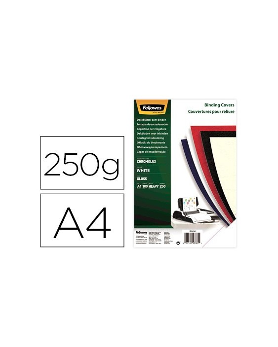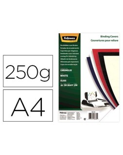 Tapa de encuadernacion fellowes din a4 carton brillo blanco chromolux 250 gr pack de 100 unidades