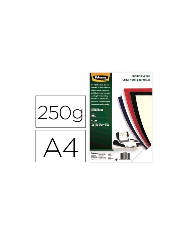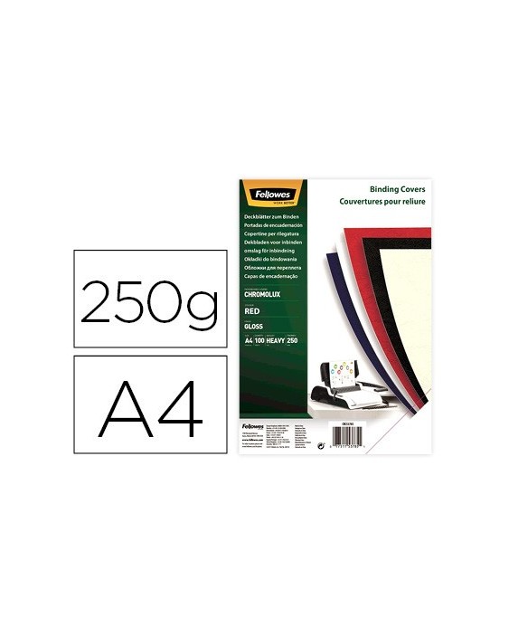 Tapa de encuadernacion fellowes din a4 carton brillo rojo chromolux 250 gr pack de 100 unidades