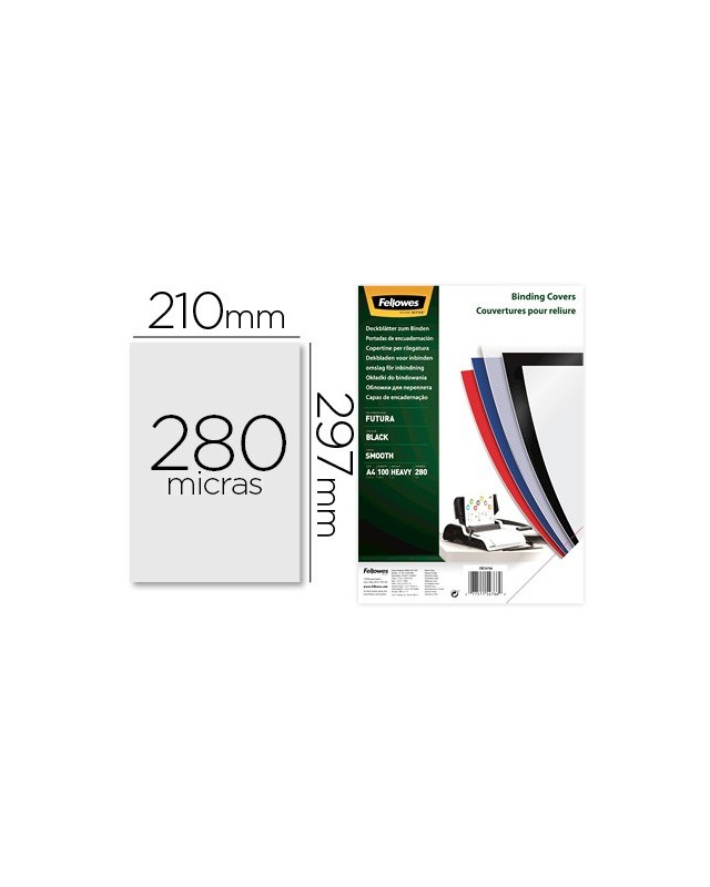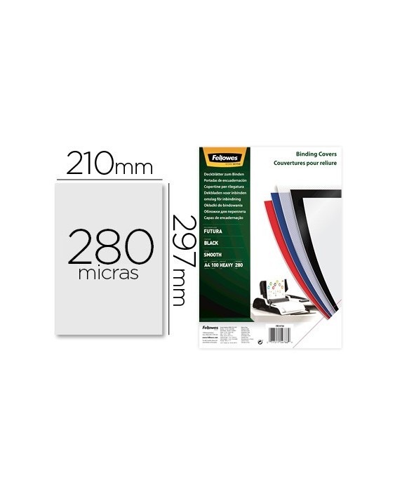 Tapa de encuadernacion fellowes din a4 polipropileno negro 280 micras pack de 100 unidades