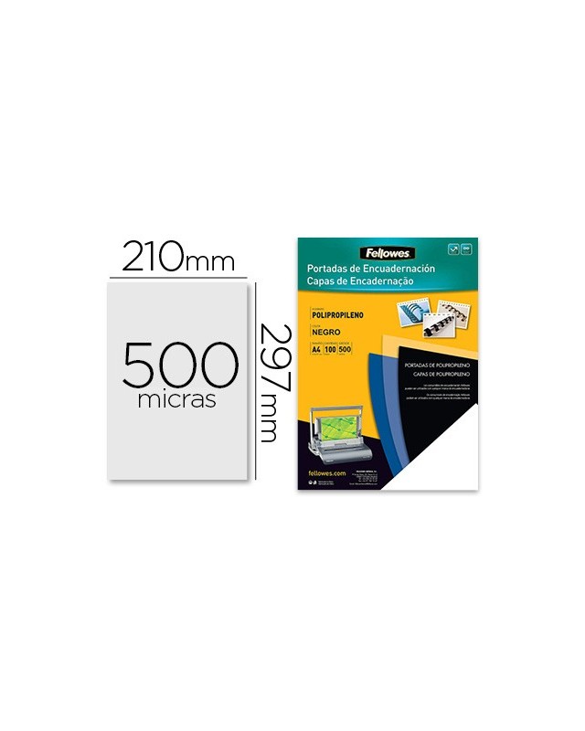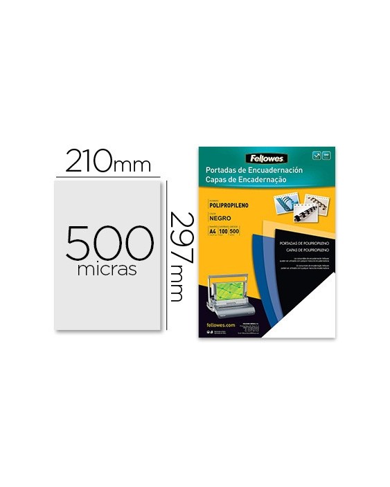 Tapa de encuadernacion fellowes din a4 polipropileno negro 500 micras pack de 100 unidades