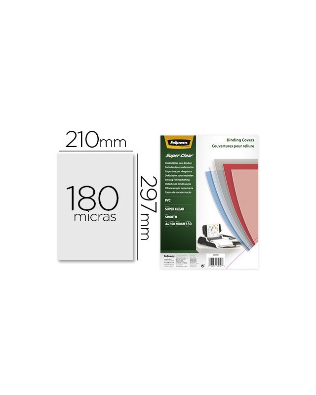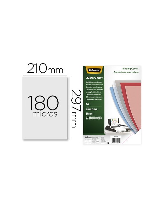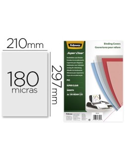 Tapa de encuadernacion fellowes din a4 pvc transparente cristal 180 micras pack de 100 unidades