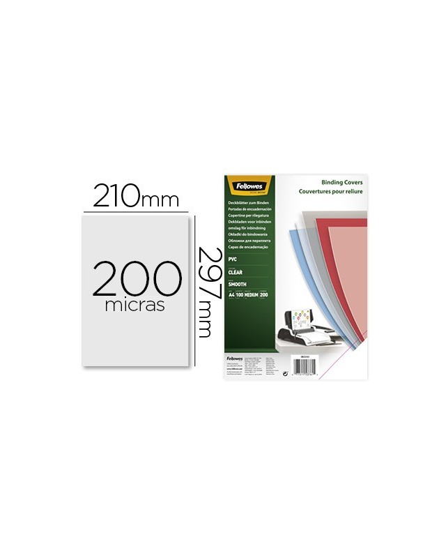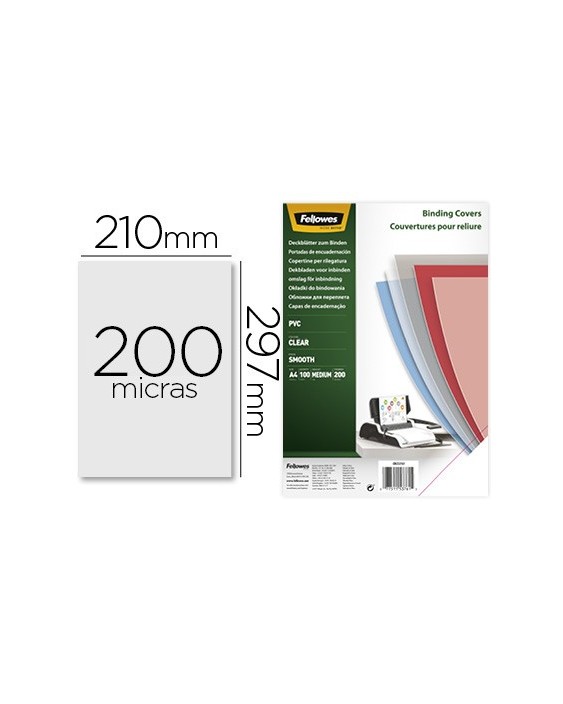 Tapa de encuadernacion fellowes din a4 pvc transparente cristal 200 micras pack de 100 unidades