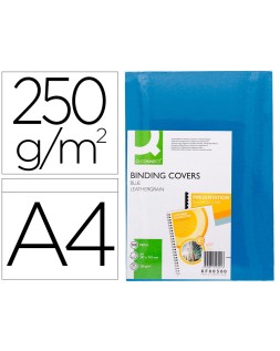 Tapa de encuadernacion q-connect carton din a4 azul simil piel 250 gr caja de 100 unidades