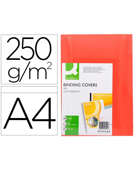 Tapa de encuadernacion q-connect carton din a4 rojo simil piel 250 gr caja de 100 unidades