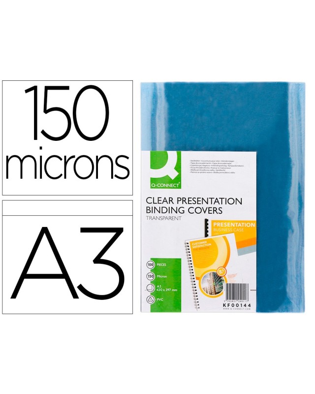 Tapa de encuadernacion q-connect pvc din a3 incolora 150 mc caja de 100 unidades