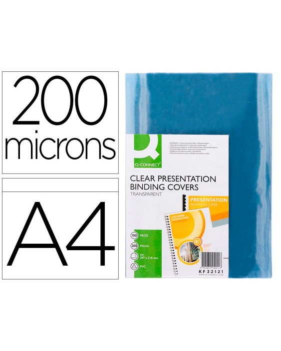 Tapa de encuadernacion q-connect pvc din a4 incolora 200 mc paquete de 100 unidades