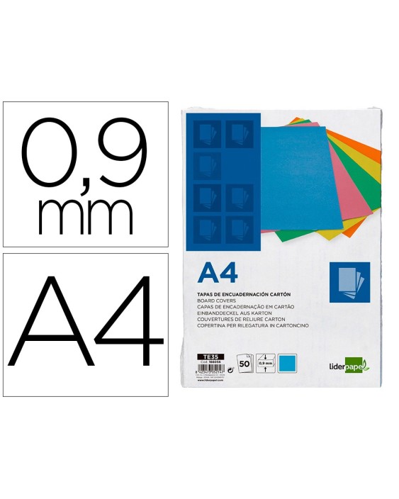Tapa encuadernacion liderpapel carton a4 0,9mm azul fluor paquete de 50 unidades