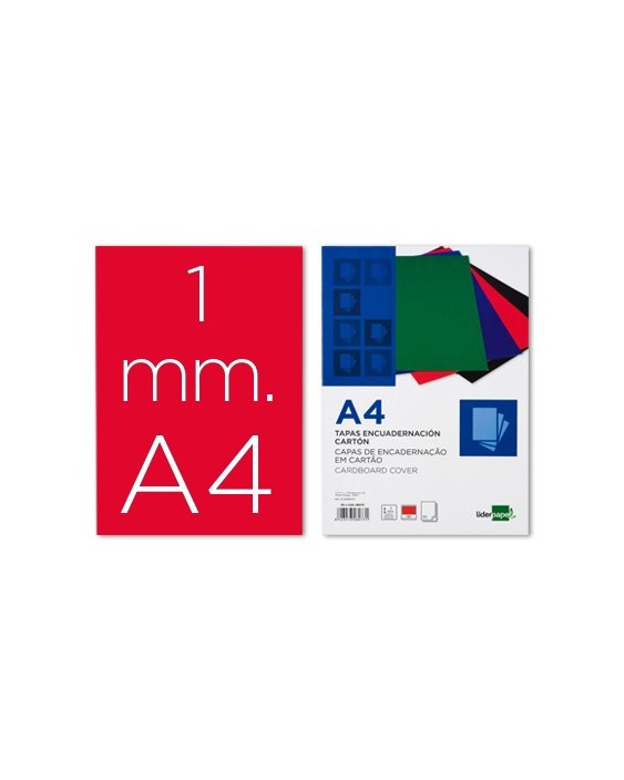 Tapa encuadernacion liderpapel carton a4 1mm roja paquete de 50 unidades