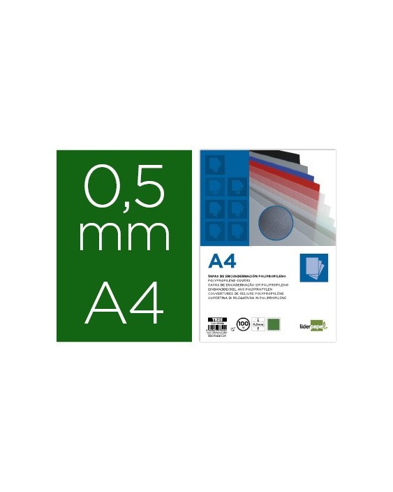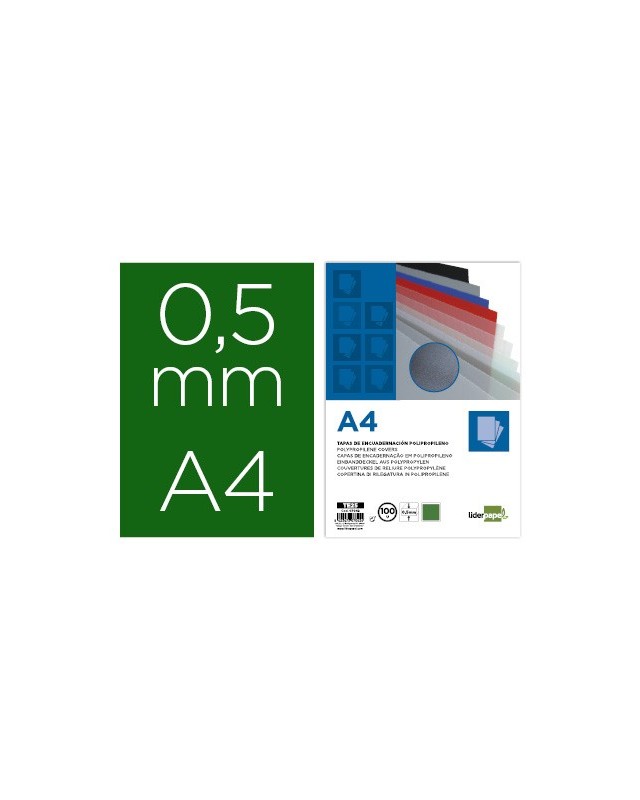 Tapa encuadernacion liderpapel polipropileno a4 0.5mm verde opaco paquete de 100 unidades