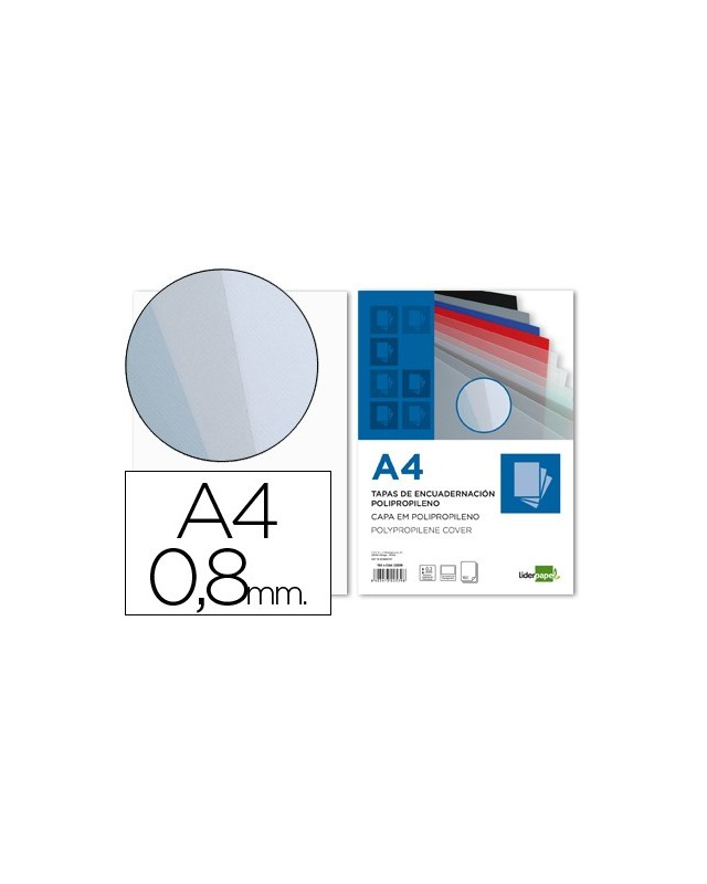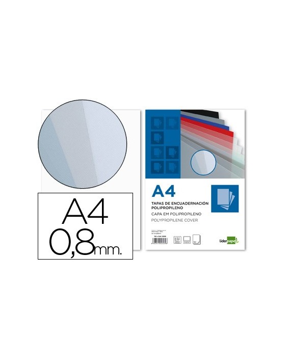 Tapa encuadernacion liderpapel polipropileno a4 0.8mm transparente paquete de 50 unidades