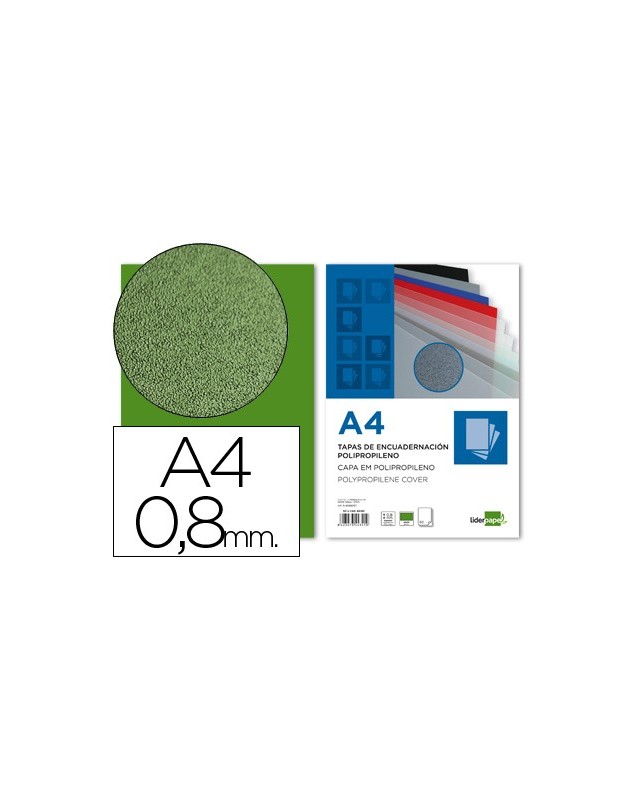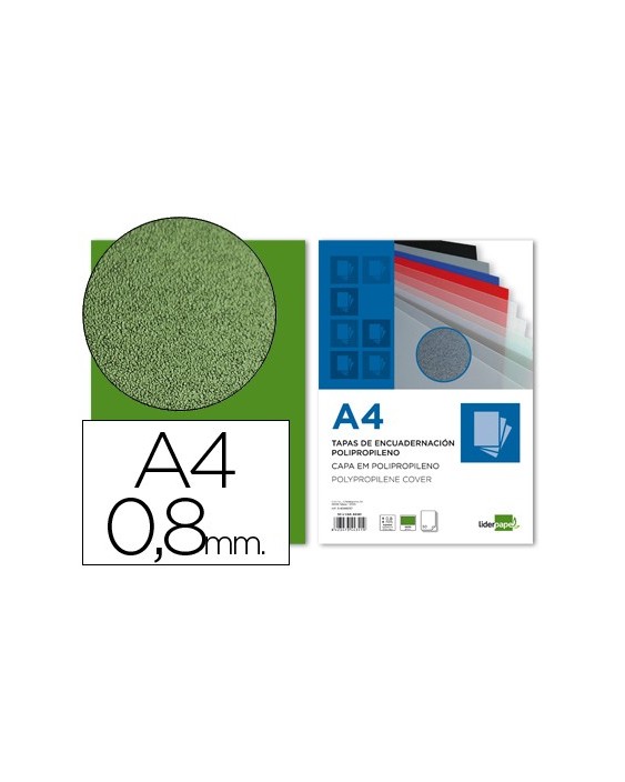 Tapa encuadernacion liderpapel polipropileno a4 0.8mm verde opaco paquete de 50 unidades