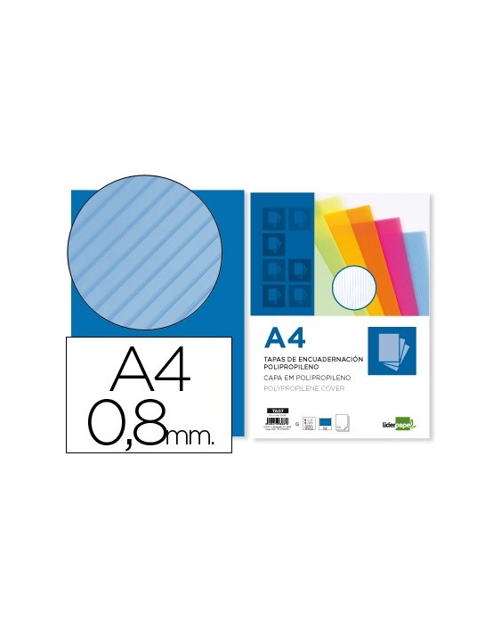 Tapa encuadernacion liderpapel polipropileno ondulado a4 0.8 mm azul paquete de 50 unidades
