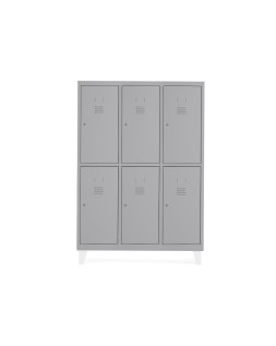 Taquillas de 3 módulos de 30 cm de ancho, pensadas para uso en ambientes interiores tales como vestuarios, centros sanitarios, administración pública, entornos educativos, industriales o comerciales. Taquillas monoblock metálicas con una estructura soldada para obtener una rigidez y estabilidad óptima. Sistema de bisagra pivotante de fácil montaje con apertura de 125º. Puertas con etiquetero y sistema de ventilación de serie. Incorporan cerradura de tipo pestillo. 4 Pies metálicos no incluidos, se compran por separado (Ver referencia Rocada TFT-02-7035). Las taquillas se suministran sin pies ni zócalos. Si lo necesitan recuerden solicitarlos aparte. Las taquillas no son aptas para usos en ambientes exteriores ni para aplicaciones es de almacenaje de productos químicos, tóxicos