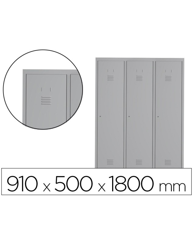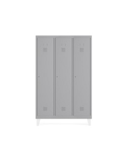 Taquillas de 3 módulos de 30 cm de ancho, pensadas para uso en ambientes interiores tales como vestuarios, centros sanitarios, administración pública, entornos educativos, industriales o comerciales. Taquillas monoblock metálicas con una estructura soldada para obtener una rigidez y estabilidad óptima. Sistema de bisagra pivotante de fácil montaje con apertura de 125º. Puertas con etiquetero y sistema de ventilación de serie. Incorporan cerradura de tipo pestillo. 4 Pies metálicos no incluidos, se compran por separado (Ver referencia Rocada TFT-02-7035). Las taquillas se suministran sin pies ni zócalos. Si lo necesitan recuerden solicitarlos aparte. Las taquillas no son aptas para usos en ambientes exteriores ni para aplicaciones es de almacenaje de productos químicos, tóxicos