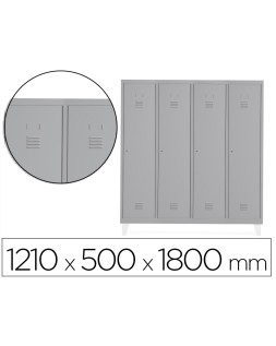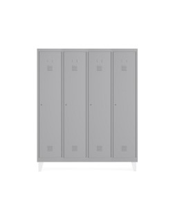 Taquillas de 4 módulos de 30 cm de ancho, pensadas para uso en ambientes interiores tales como vestuarios, centros sanitarios, administración pública, entornos educativos, industriales o comerciales. Taquillas monoblock metálicas con una estructura soldada para obtener una rigidez y estabilidad óptima. Sistema de bisagra pivotante de fácil montaje con apertura de 125º. Puertas con etiquetero y sistema de ventilación de serie. Incorporan cerradura de tipo pestillo. 4 Pies metálicos no incluidos, se compran por separado (Ver referencia Rocada TFT-02-7035). Las taquillas se suministran sin pies ni zócalos. Si lo necesitan recuerden solicitarlos aparte. Las taquillas no son aptas para usos en ambientes exteriores ni para aplicaciones es de almacenaje de productos químicos, tóxicos