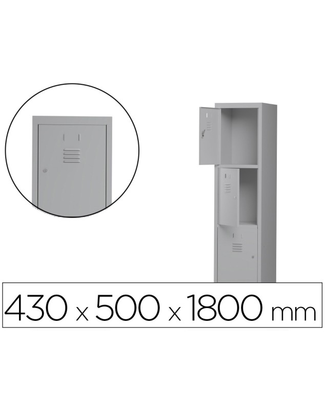 Taquillas individuales de 40 cm de ancho, pensadas para uso en ambientes interiores tales como vestuarios, centros sanitarios, administración pública, entornos educativos, industriales o comerciales. Taquillas monoblock metálicas con una estructura soldada para obtener una rigidez y estabilidad óptima. Sistema de bisagra pivotante de fácil montaje con apertura de 125º. Puertas con etiquetero y sistema de ventilación de serie. Incorporan cerradura de tipo pestillo. 4 Pies metálicos no incluidos, se compran por separado (Ver referencia Rocada TFT-02-7035). Las taquillas se suministran sin pies ni zócalos. Si lo necesitan recuerden solicitarlos aparte. Las taquillas no son aptas para usos en ambientes exteriores ni para aplicacionesnes de almacenaje de productos químicos, tóxicos