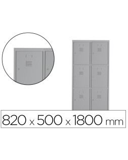 Taquilla metalica rocada 400 2 modulos x 3 puertas gris 820x500x1800 mm