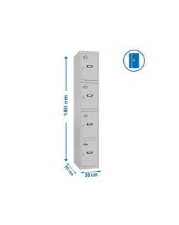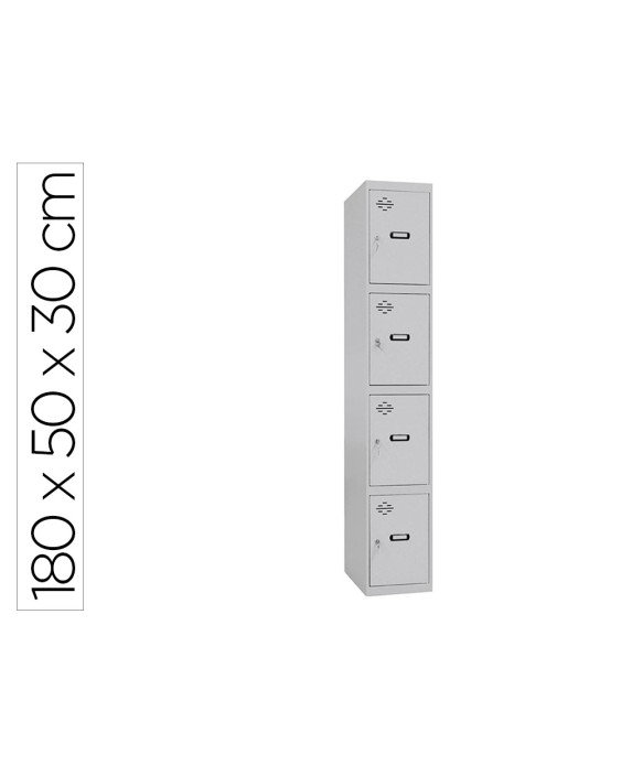 Taquilla metalica simonrack 4 puertas con cerradura montada respiradero y etiquetero gris/gris 1800x500x300 mm