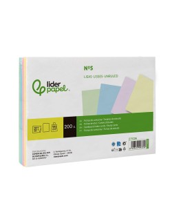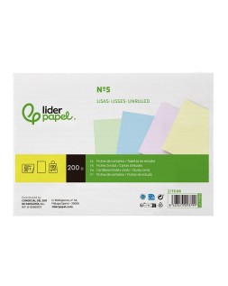 Tarjeta liderpapel para estudiar lisa cartulina de colores 170 gr/m2 160x220mm paquete de 200 unidades