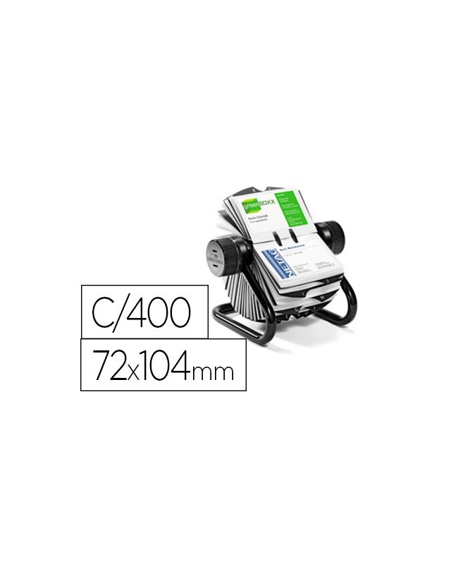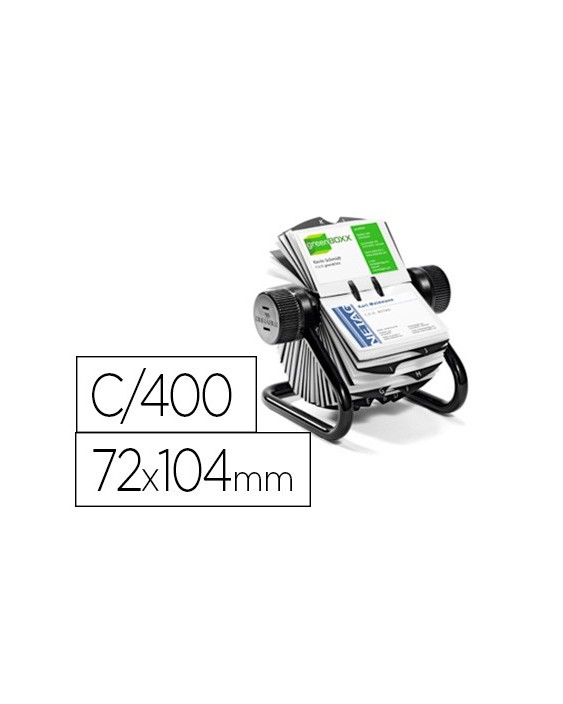 Tarjetero rotatorio para archivar tarjetas de visita. Incluye 200 fundas tamaño 104 x 72 mm con capacidad para 400 tarjetas de visita y 25 separadores con impresión alfabética A-Z. El diseño de las fundas permite una fácil inserción, extracción y marcación de las mismas. Color negro. Medidas: 230 x 140 x 190 mm.