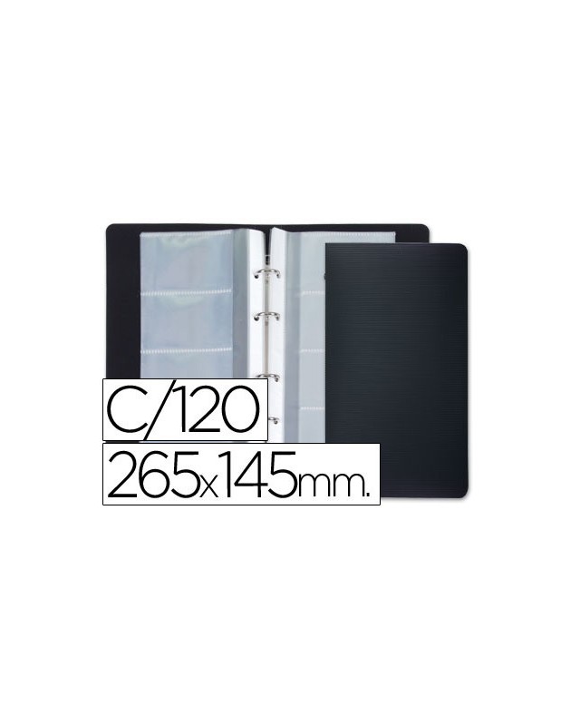 Tarjetero liderpapel 4 anillas 15 fundas de 4 departamentos 265x145 mm