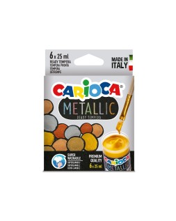 Tempera escolar carioca metallic bote 25 ml caja de 6 colores surtidos