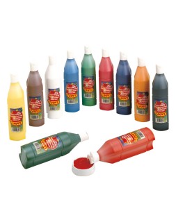 La témpera líquida a base de agua, lista para usar, adecuada a partir de los 3 años de edad. Ideal para utilizar sobre papel, cartulina, madera, tela, barro, pasta de modelar, etc. Se aplica con pincel, rodillo, espátulas o esponjas. Su práctico tapón dosificador ayuda a no desaprovechar ni una gota. La botella de 500 ml.