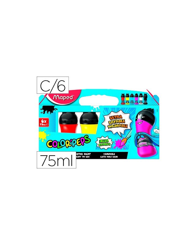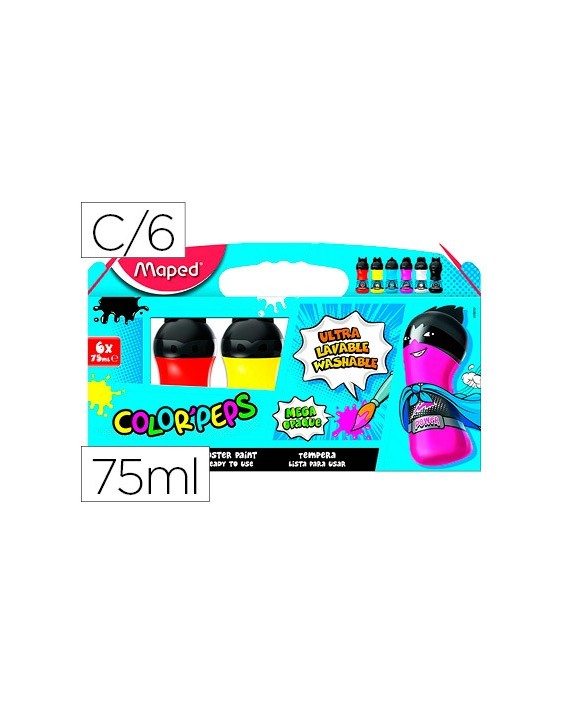 Tempera maped color peps ultra lavable caja de 6 colores surtidos primarios 75 ml