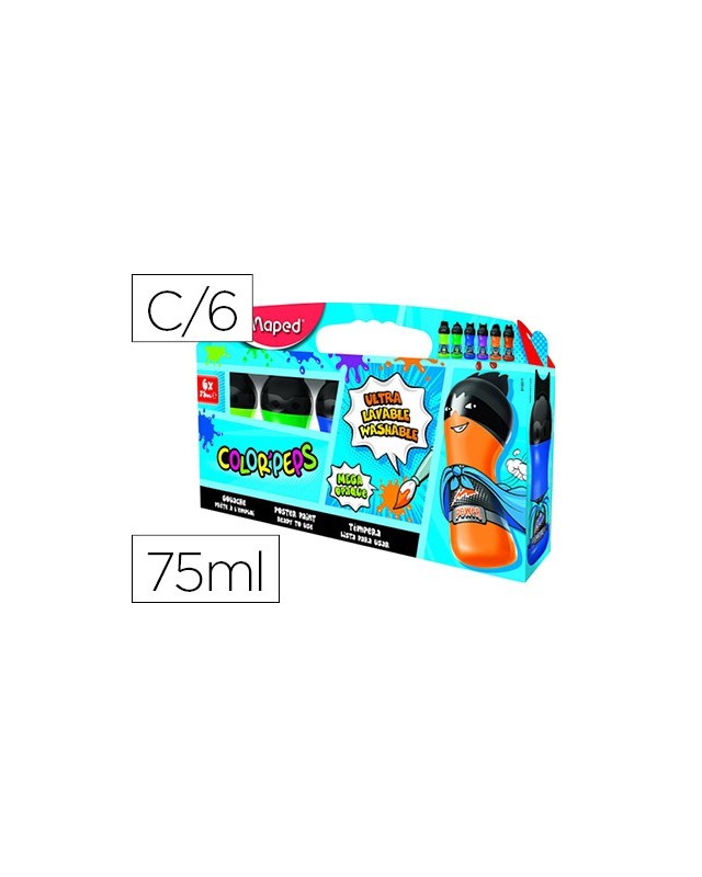 Tempera maped color peps ultra lavable caja de 6 colores surtidos secundarios 75 ml