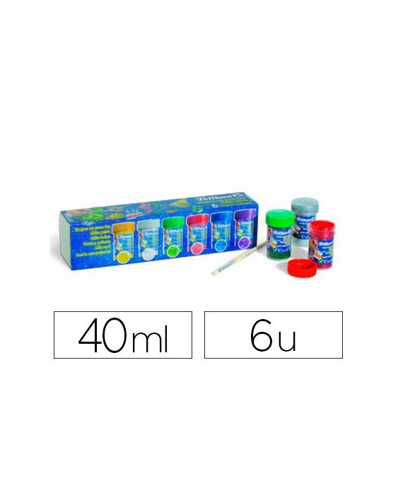 Tempera pelikan glitter 20 ml 942/20s caja 6 colores surtidos + pincel