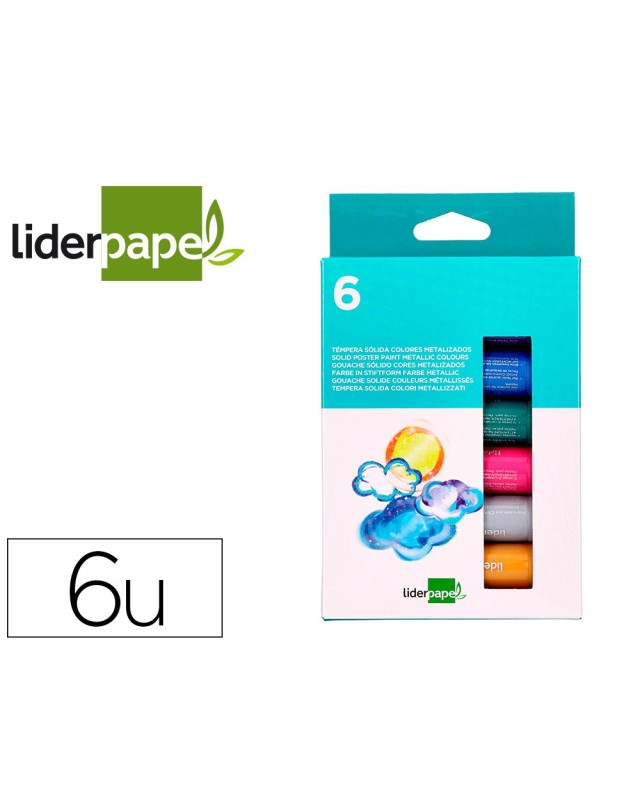 Tempera solida en barra liderpapel escolar 10 gr caja de 6 colores surtidos