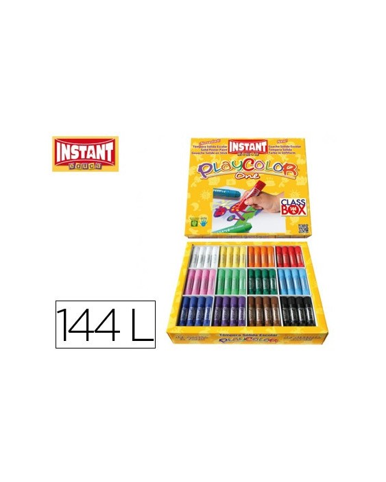 Tempera solida en barra playcolor escolar caja de 144unidades 12 colores surtidos