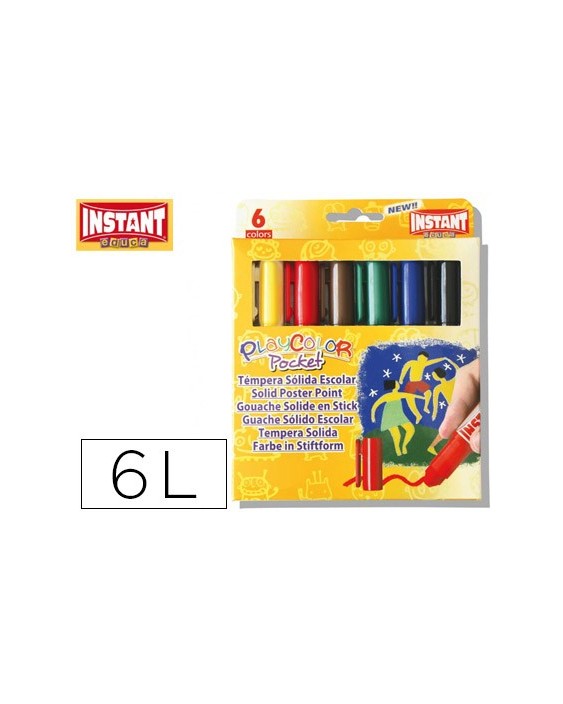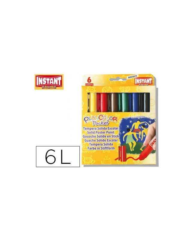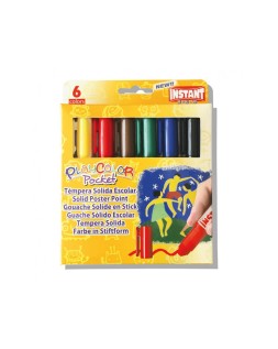 Tempera solida en barra playcolor pocket escolar caja de 6 colores surtidos