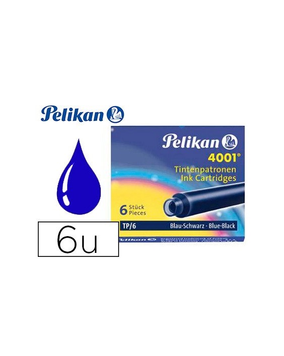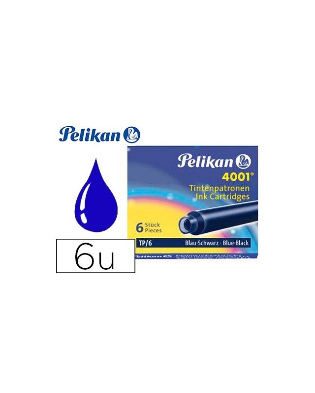 Tinta estilografica pelikan tp6 azul/negro caja de 6 cartuchos