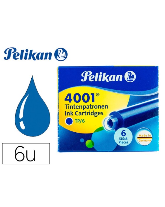 Tinta para plumas pelikan azul real caja 6 cartuchos