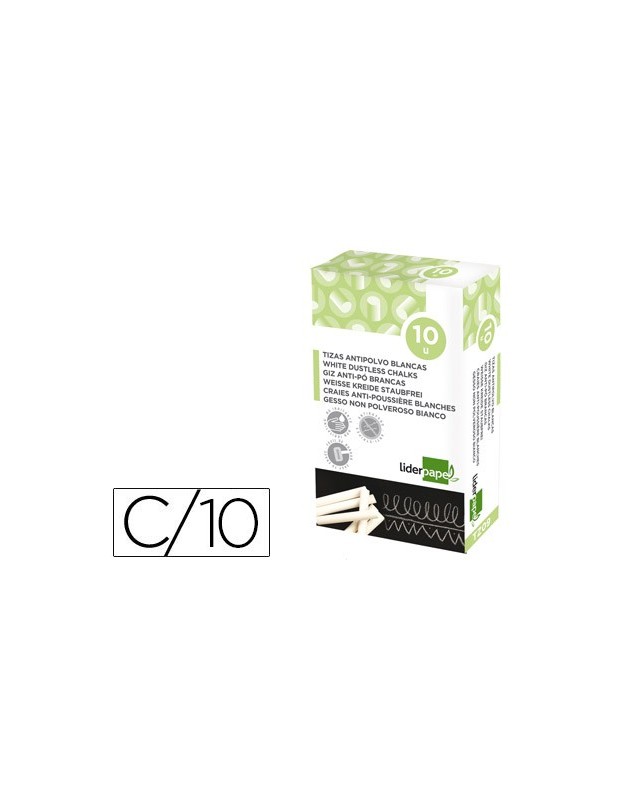 Tiza blanca antipolvo liderpapel caja de 10 unidades