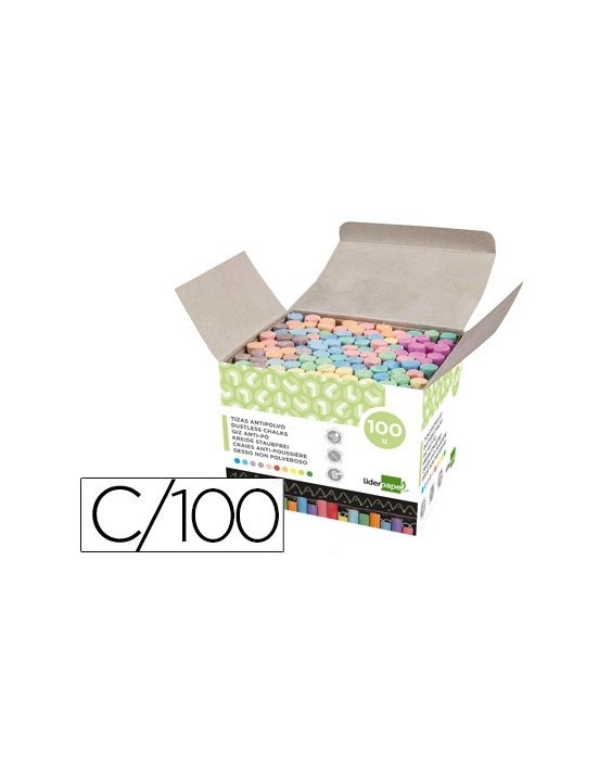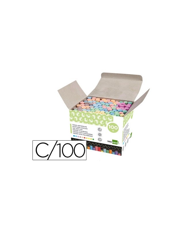 Tiza color antipolvo liderpapel caja de 100 unidades colores surtidos